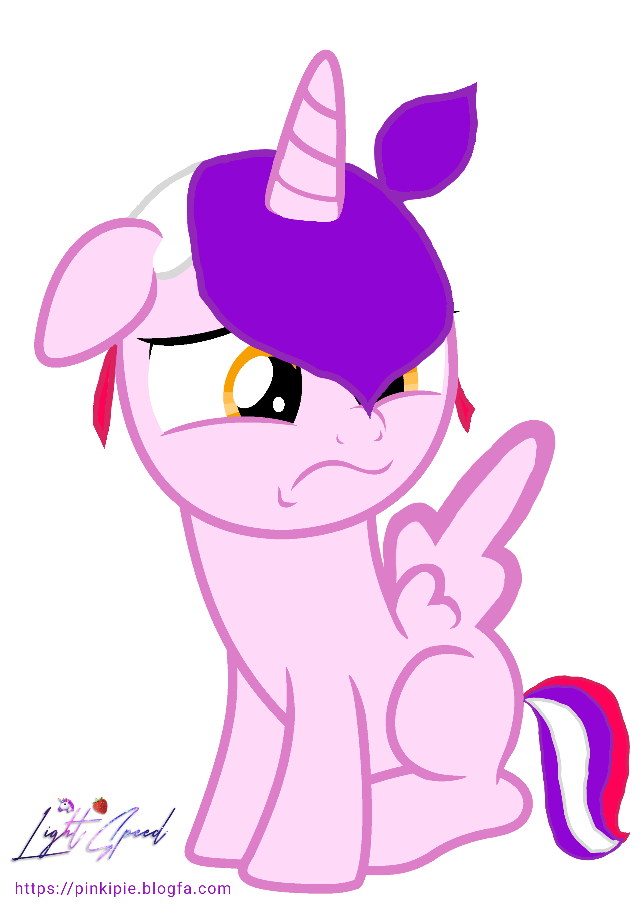 خصوصیات:چشماش نارنجی مایل به زرده و بدنش صورتی کمرنگه و موهاش ترکیبی از رنگ بنفش سفید و صورتیه.خیلی شاد و مهربونه،حیوونات رو دوسداره